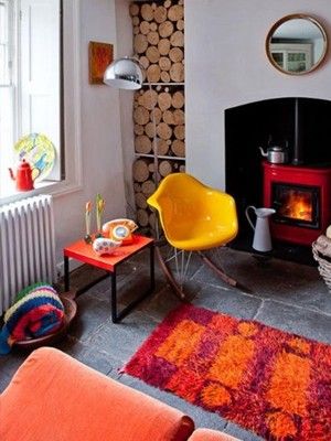 編輯點(diǎn)評:在客廳一側(cè),暖色的各色裝修鋪雜但不凌亂,黑與白的交接也不顯突兀。更有藏在角落里的一堆木頭,十分可愛。