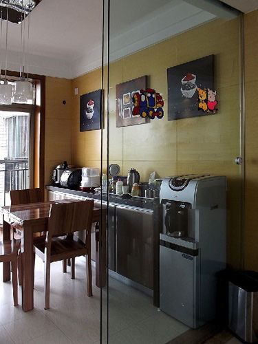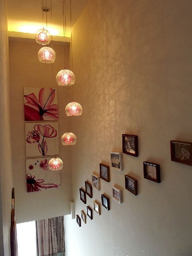 很有愛的復式美家在樓梯上裝扮了不少的飾品。