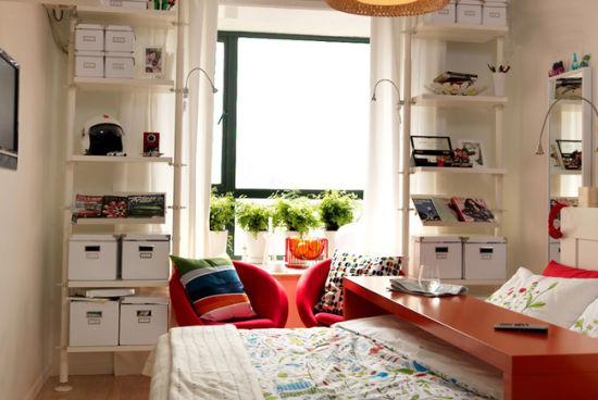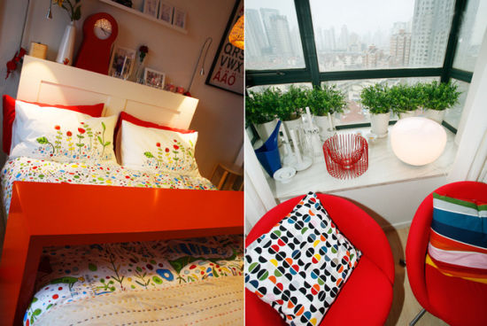 工作雖然忙碌、空間雖然狹小,但一點(diǎn)也不會(huì)影響兩個(gè)人坐下來喝杯咖啡,種一株綠植,恩愛的兩個(gè)人有個(gè)共同的愛好,就是喜歡養(yǎng)綠色小植物。臥室里面還有一個(gè)面積不大的飄窗,這是女主人最喜歡的地方,上面種植著精心培植的植物,飄窗前擺放著兩把時(shí)尚的紅色休閑椅,漂亮吧,很喜歡。