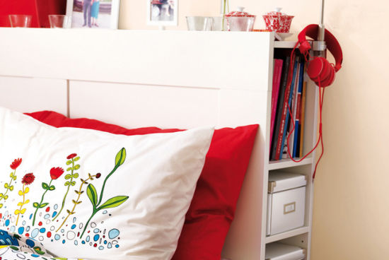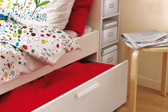 看,床下有功能強(qiáng)大的空間收納,用于儲(chǔ)存換季床上用品、冬秋衣服也非常合適,這也是我們最值得炫耀的事。收納柜里面的衣物又是紅色的,呵呵……