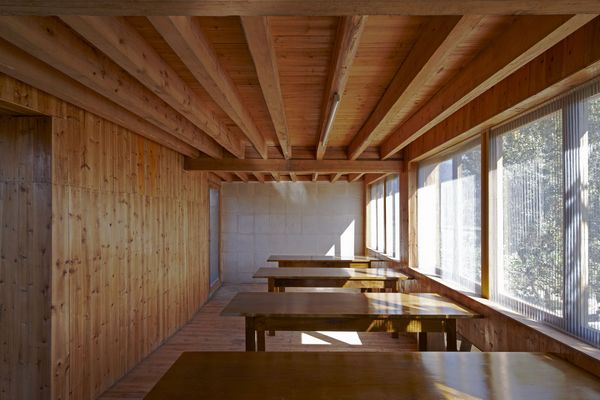 項(xiàng)目從尺度上采用聚落的形式來適應(yīng)場地環(huán)境,化整為零,避免體量過大帶來的突兀感,而聚落式的建筑在內(nèi)部又產(chǎn)生了不斷室內(nèi)外交互的空間體驗(yàn),以此來提示觀眾建筑、造紙、與環(huán)境之間密不可分的關(guān)系。