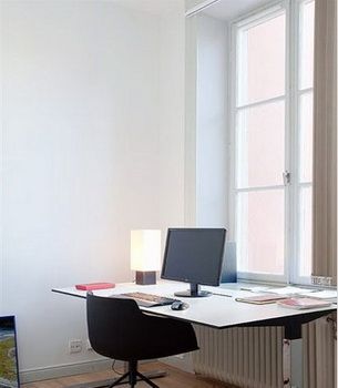 黑色的座椅和帶有金屬材質(zhì)的工作臺給人一種后現(xiàn)代的洗練與冷靜的酷感。搭配干凈的白色和醇厚的原木地板,抵消冰冷感的同時(shí)更增添了幾分和諧與暖意。