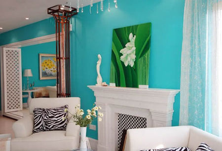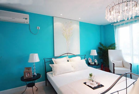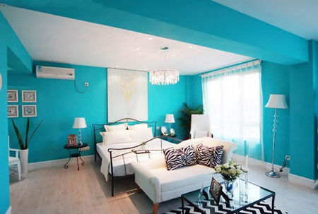 藍色的背景墻與白色的墻面相結(jié)合,用色彩的原理,給人精神上的支持。白色的家具不僅干凈整潔更加富有美感,很招人喜歡。