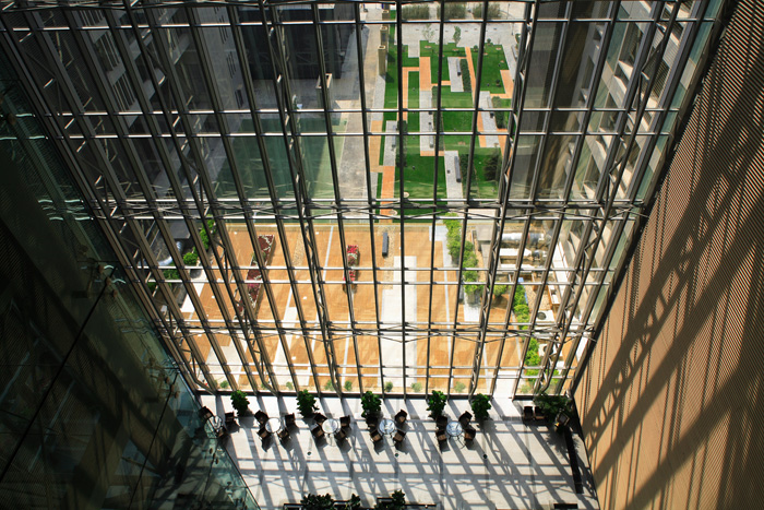 北京市人民檢察院新辦公樓是我院改革重組后第一個(gè)中標(biāo)并獨(dú)立設(shè)計(jì)完成的大型公建項(xiàng)目,它由環(huán)境和規(guī)劃條件出發(fā)所采用的非對(duì)稱格局,是對(duì)國(guó)家機(jī)關(guān)大型辦公樓一貫對(duì)稱制的突破。建筑外部材料采用清水混凝體掛板、U型玻璃及鋁合金格架幕墻的組合方式,給人形成新的材料體驗(yàn)感。室內(nèi)空間和室外空間基本完成了建筑師的設(shè)計(jì)意圖,成功地演繹了國(guó)家司法機(jī)關(guān)簡(jiǎn)明、透明、明朗、明確的文化特質(zhì)。