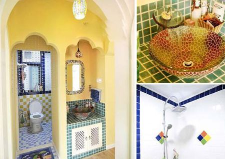 洗漱臺(tái)和沖涼房分開,頂部墻面的弧線很漂亮,裝修的很溫暖,很藝術(shù)。