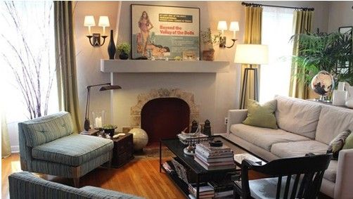 裝飾Tips:灰色雙人沙發(fā)搭配綠色單人沙發(fā),穩(wěn)重和活力元素同時注入,圍繞著茶幾擺放。簡單的兩層茶幾擺放平時閱讀的書本,雜物較多的情況下用藤籃收納在茶幾下層。壁爐上放上綠色小植物,讓屋內(nèi)的空氣更清新。