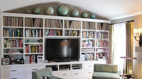 裝飾Tips:靠墻電視柜和書櫥合二為一,將書本、DVD、CD分類收納在柜子里面,讓客廳更加井然有序,收納的時候也更為方便。天花板有弧度的,在書櫥頂上放上,制造弧度呼應(yīng)天花板。