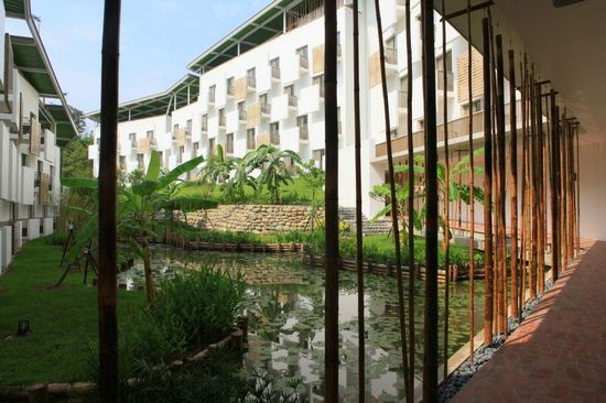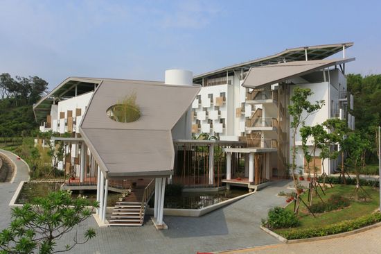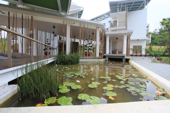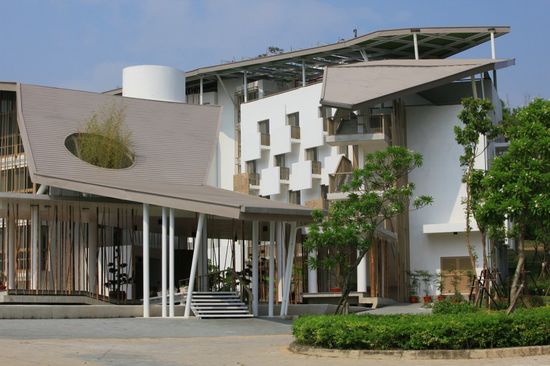 該地塊是臺灣南部47公頃的ITRI校園的第二階段建設(shè)。整個校園被編程為研究環(huán)境,包括硬件建設(shè)和美化軟件1500人。整體布局包括科研樓,食堂,宿舍,生態(tài)池,竹林,有機綠色的房子,也是一門藝術(shù)區(qū)竹窯。該場地三面環(huán)山,西部面向湖泊。布局的目的是不僅有了構(gòu)建集群適合環(huán)境而是使這個地方的棲息地現(xiàn)有的生態(tài)系統(tǒng)。此外,建立網(wǎng)站,連同其網(wǎng)絡(luò)景觀在整個校園,預(yù)計將成為一個偉大的地方生態(tài)觀測。