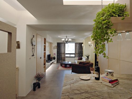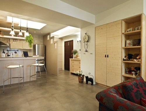 喜愛歐洲風情屋主,期待空間有著石材堆砌的質(zhì)感,感性營造猶如地中海漫游的生活情節(jié)。淺色立面施以深色門斗,框定了女主人的私密場域。