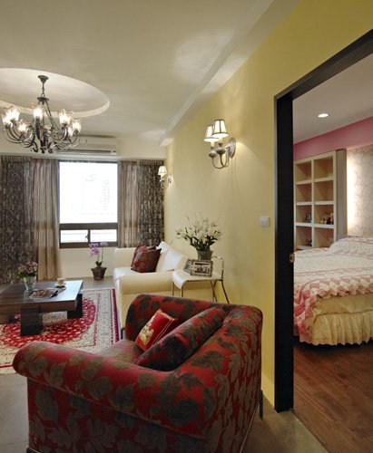 對于繽紛色彩有著極高接受度,規(guī)劃中當代空間設(shè)計選以鵝黃為主色調(diào)鋪陳,淡雅柔和調(diào)色著家俬色彩。設(shè)計師于懷晴大膽采以野苺色為主調(diào),側(cè)向佐以長型訂作的窗臺桌,跳色耀眼又不失實用性。