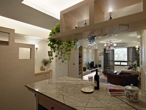 吧臺規(guī)劃滿足收納功能,同時也避免餐桌置入后動線過于擁擠問題。