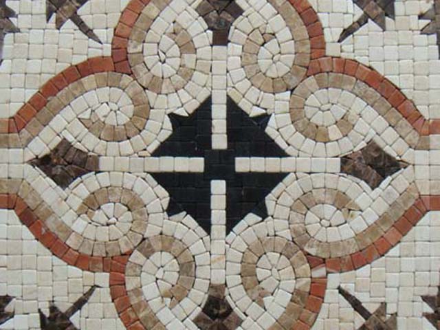石材拼花馬賽克圖案的鋪設方法有三種,一是在整體板材上粘連、拼接圖案的方法,也叫直接拼裝法。除此之外,還有兩種毛面的石材拼花馬賽克圖案的鋪設方法,一是背紙法,類似于玻璃馬賽克,先將拼好的圖案粘貼到牛皮紙網上,用混泥土直接粘于安裝面上,固化后,去掉紙網即可;另一種是托架法,可預先按照設計圖案,制作一些ABS塑料支架,每一塊毛面石材均對應于一個支架,支架用螺絲固定在安裝面上,然后用粘接劑將石材粘到支架上,同樣可以組成各種圖形美觀、仿古的石材拼花效果,施工十分方便。