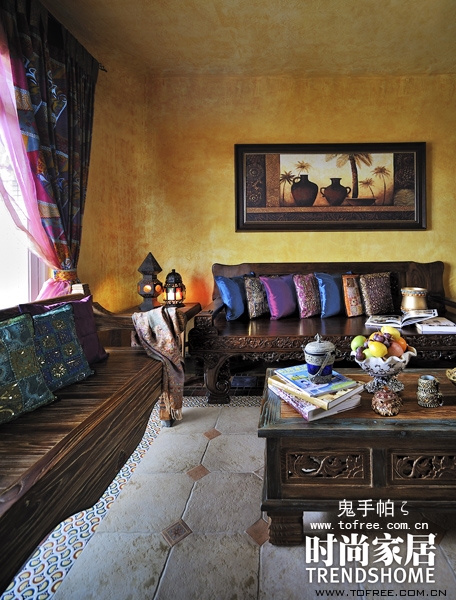 完工時特意帶寶寶去一次紅茶家,接受早期藝術(shù)熏陶,人的眼界決定他的手,技巧的提高容易但眼光的潛移默化困難。上次看東南亞的她不喜歡,說:“怎么都是咖啡色,黑黑的。”太不給我面子了,簡直想揍她,沒想到這次寶寶非常喜歡,估計覺得可以進(jìn)行探寶游戲,對我說:“媽媽,以后你也設(shè)計個一模一樣的做我們家好不好?”紅茶說:“干脆嫁給我兒子算了,要不怎么可能一模一樣?”