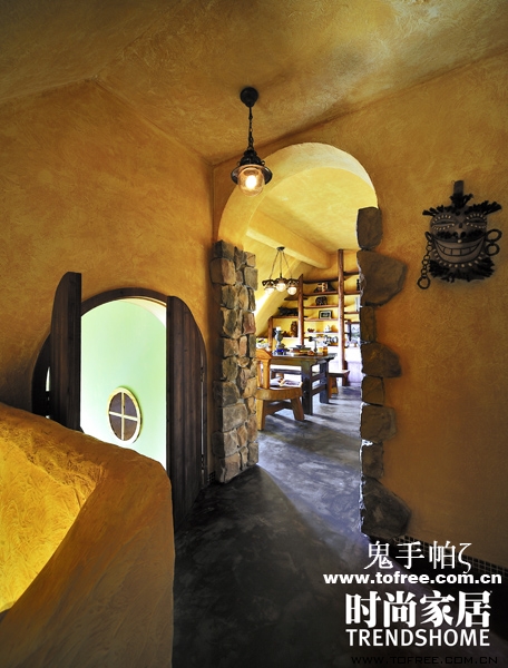 這個本來是露臺的門被改造為窗戶后去露臺的門從側(cè)面現(xiàn)在看不到的角落出去,左邊弧門內(nèi)的是