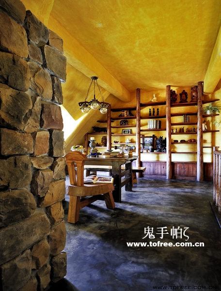 2樓的休閑區(qū),木工手藝不錯,硬是刨出我要的仿自然扭曲樓梯欄桿,然后舉著手給我看滿手血泡告訴我:“干你的活是多掙一倍的錢但多做3倍的工。”而后半年沒看到他,估計見我覺得麻煩跑得遠(yuǎn)遠(yuǎn)地去了。
