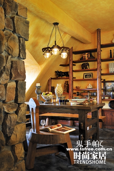 閣樓這部分為親子區(qū),是紅茶陪兒子玩手工的地方,兒子房的房門開在2樓,上鋪離閣樓有60的落差,也弄個門,上次帶寶寶去玩,寶寶樂壞了,從2樓進(jìn)去,閣樓爬出來,再從外面樓梯走出來,開心得不得了,本以為小孩子不喜歡這么厚重的風(fēng)格,沒想到紅茶說所有過來的小孩都非常喜歡,覺得是個游樂迷宮