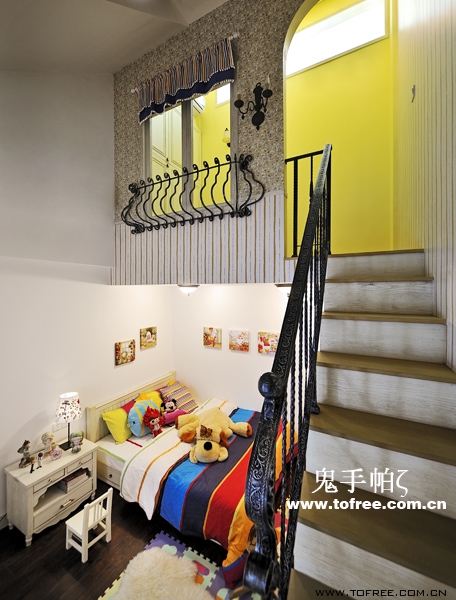 施工日記:這套房子套內(nèi)實(shí)用面積64平方,兩個陽臺再加10平,由于樓高最高部分達(dá)到7.3米,于是在中間多倒了40平方作為2樓,房子是斜頂,兩邊向下斜的,樓梯的位置從斜部向上走不浪費(fèi)空間,使樓上可用面積盡量大些,經(jīng)過規(guī)劃,樓下安排的功能為玄關(guān),客廳,餐廳,廚房,次衛(wèi),開放式工作區(qū),小孩房,樓上為主臥區(qū)域,上樓后先是外置的洗手臺干區(qū),濕區(qū)是整套中自然采光最差的地方,除了磨砂玻璃門,引入餐廳的光線外,另一面從小孩房內(nèi)采光,小孩房內(nèi)自身分為上下兩個空間,有獨(dú)立的室內(nèi)樓梯,以備家里老人來的時候可以兼臨客房,上鋪倒樓板的高度比2樓主臥區(qū)矮了400,所以在次衛(wèi)的高處開一條封閉的長窗戶對小孩房并不形成干擾,淋浴房在面對書房的那面墻也開出窗戶,多處借光,這房子有溫泉經(jīng)過,主人想安排浴缸,由于房間面積緊湊面積,在濕區(qū)塞下十分困難,業(yè)主某日深思后告訴我可以接受浴缸放在書房,于是這一大麻煩事得以解決,這種功能性的問題如果不是業(yè)主可以大膽取舍一般不敢推薦。主臥的書房在餐廳的上空,也是靠餐廳的窗戶采光,考慮夏天空調(diào)的問題,干區(qū)和書房,書房和主臥之間分別有門隔開。
