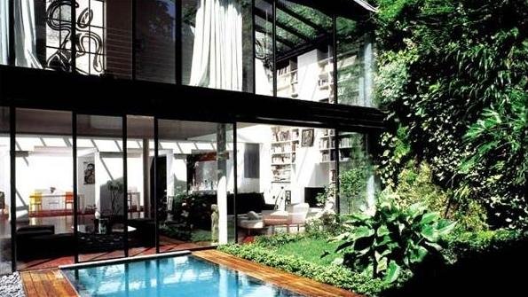 法國建筑師吉堯姆·科欽Guillaume Cochin與他的妻子Peri和四個兒子住在巴黎郊區(qū)Saint-Germain的一條安靜的街道上。本案就是他為自己的家庭設(shè)計的環(huán)境優(yōu)美的家,占地 8600平方英尺,兩層玻璃混凝土結(jié)構(gòu),并帶有多個天窗和高大的玻璃墻。