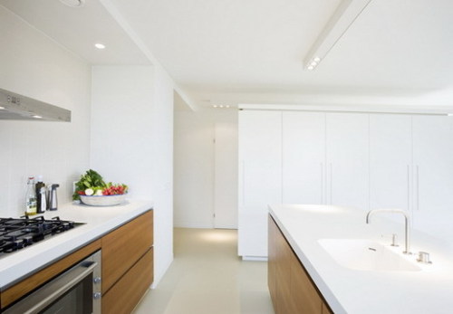 公寓使用面積120平方米,包括一個(gè)客廳、一個(gè)臥室、一間書房、一廚二衛(wèi)一餐廳,以及一個(gè)室外陽臺。公寓簡潔溫馨且淡雅舒適,整體以白色調(diào)為主,包括大多數(shù)的木作家具,櫥柜面板為木飾面本色,再加上茶幾沙發(fā)等的軟飾搭配,顯得白色調(diào)也不會(huì)寒冷。