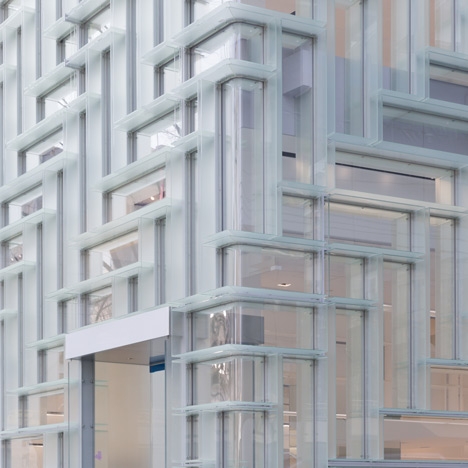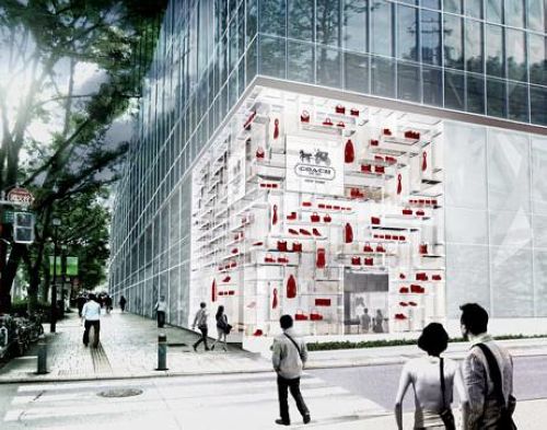OMA新的美國配飾品牌Coach東京商店是一個(gè)明亮的正方形建筑,呈人字形結(jié)構(gòu)展示。OMA新的Coach表參道旗艦店重新闡釋了原始木制貨架式展覽箱,組合是透明的玻璃盒從地面堆置屋頂。清晰的貨架呈人字形排列,構(gòu)成了墻壁的外圍,讓一系列商品從任何位置都能看見,而且也采用了公司品牌作為表面特點(diǎn)元素。