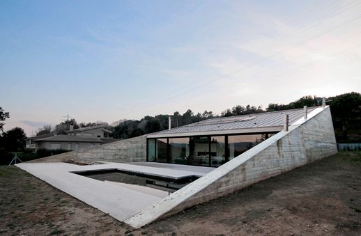 建筑位于西班牙girona,是巴塞羅那hidalgo hartmann建筑事務(wù)所設(shè)計(jì)的,他們將這座住宅作為一個(gè)觀景點(diǎn)來(lái)設(shè)計(jì),可以欣賞起伏的綠色景觀。建筑師優(yōu)先考慮了陡峭傾斜的地形,在建筑設(shè)計(jì)上采用山坡原本的輪廓,并用兩堵厚的側(cè)墻來(lái)圍合三角形的空間。