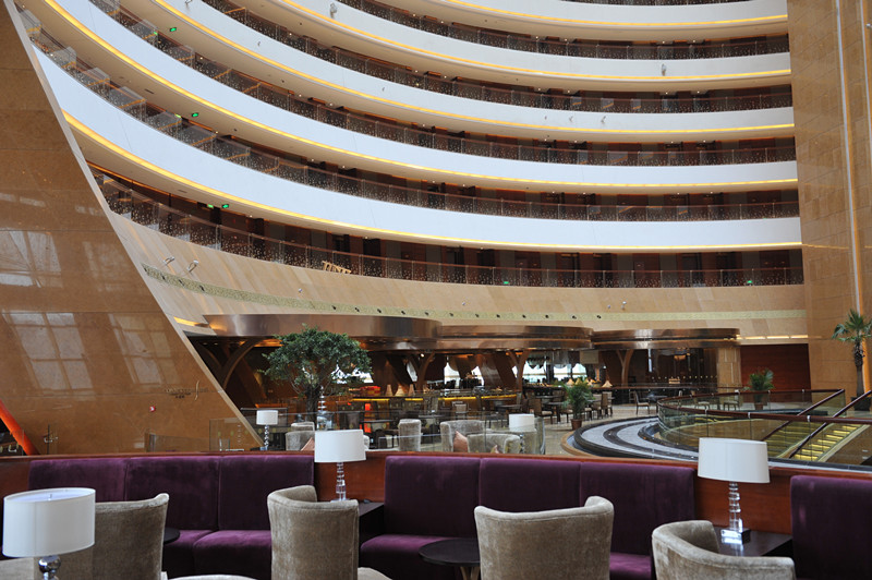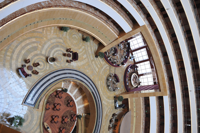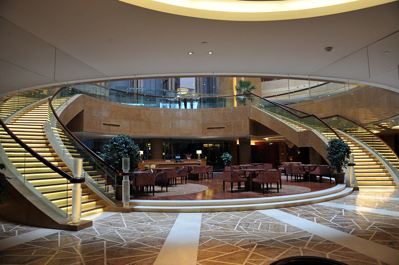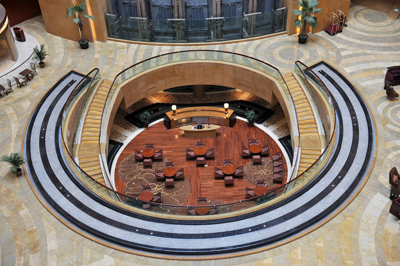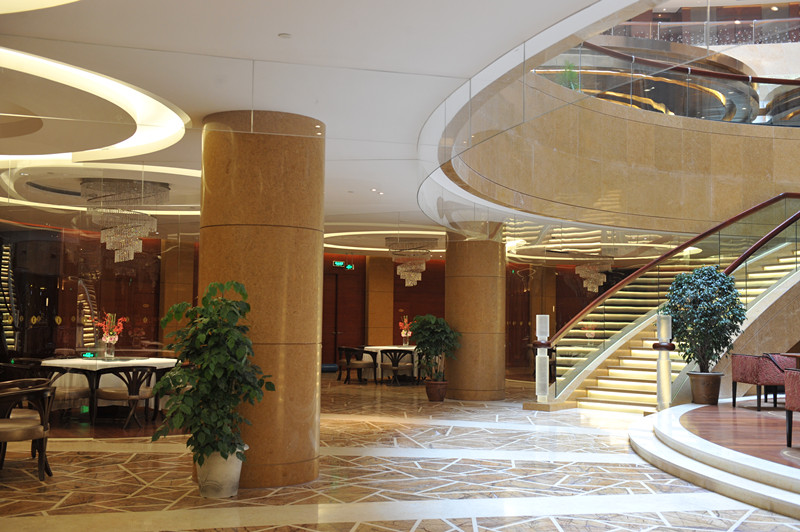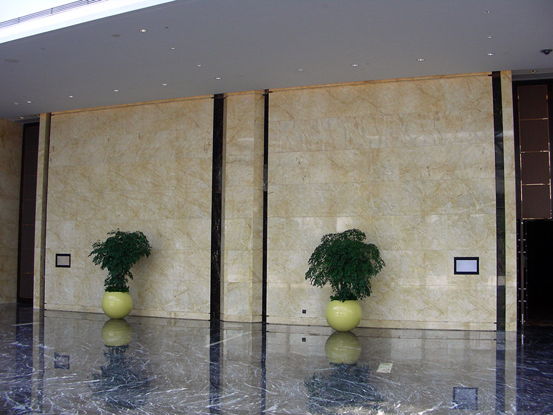 地點:浙江省杭州市 年份:2003年 品種: 鵝毛金、圣羅蘭、金年華、伯利黃、黃斑石 產(chǎn)品應(yīng)用:地面拼花、大堂圓柱、旋轉(zhuǎn)樓梯 安裝部位:酒店大堂、觀光電梯 亮點:國內(nèi)最大的球型建筑,占地660,000m2,是一座富麗堂皇的白金五星級酒店和國際會議中心,與杭州大劇院構(gòu)成了“日月同輝”的景象。 概述: 杭州國際會議中心采用鋼結(jié)構(gòu)建設(shè),建筑高度85米,主體由13米高橢圓形裙房和直徑85米的球體組成,2009年上半年建成投入使用。“錢塘涌日出新城,天地合應(yīng)瑞氣升。”杭州國際會議中心以金色為主色調(diào),幕墻采用現(xiàn)代材料復(fù)合板和金色玻璃相結(jié)合,整個建筑金碧輝煌,就像一個金色的太陽,與月亮型的杭州大劇院遙相呼應(yīng),寓意“日月同輝”。杭州國際會議中心以舉辦大型國際性會議和白金五星級酒店為標(biāo)準(zhǔn)進行功能設(shè)計,內(nèi)容有各種大小會議、宴會、演出、住宿、餐飲、娛樂、休閑等多種功能。其建筑分為地下室、裙房、球形主體三大部分。國際會議中心外墻采用金色鈦板金色玻璃幕墻,無論白天黑夜都將是錢塘江畔最耀眼的一顆明珠。 里面設(shè)計: 耀眼的金色外墻使人們眼前一亮,走進“圓球”,里面是分割成的一層一層的樓層,從5層開始直到圓球穹頂是中空的,有豪華觀光電梯上下。從5層或以上套房出來,走廊上就可直接看到藍(lán)天白云,實為壯觀。 石材應(yīng)用: 除了內(nèi)外驚人的設(shè)計外,里面華麗的石材圓柱、石材墻面和地面拼花也會使人們驚嘆不已的。 金黃色的石材圓柱支撐整個建筑,氣勢磅礴。簡單大方但高貴奢華的旋梯坐落在大堂中央,兩邊相互對稱,剛好形成一個環(huán)形,與建筑的圓球形狀相呼應(yīng),盡顯大氣和諧。 地面拼花圖形是由圓形和三角形等簡單的幾何圖形組成的,雖然簡單但不乏藝術(shù)之美,跟整個設(shè)計理念相符,恰到好處,石材顏色黃灰相間,搭配和諧。 |