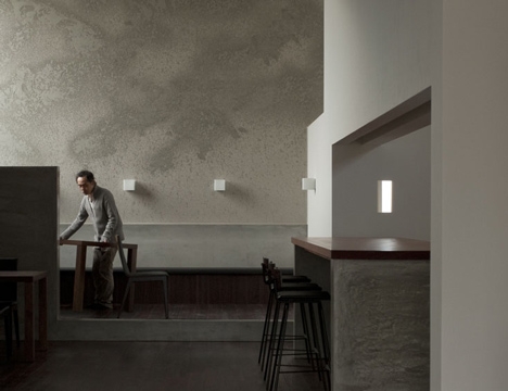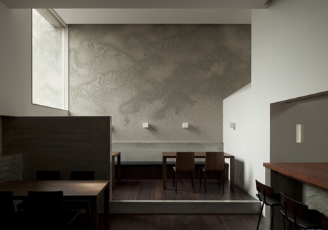 木村浩一工作室在日本兵庫縣設(shè)計了一個咖啡館,它參考了一座有混凝土尖頂?shù)慕虝ㄖ?。部分墻壁是裸露的混凝土,其余則有白色粉刷。不對稱的屋頂緩緩向上,一直延伸到與筆直的塔樓相交。“因為它極富動感的屋頂,這個咖啡館的外立面看起來更像一個廳堂或者教堂,因此使得建筑像是一個標志符號。”建筑師解釋道。