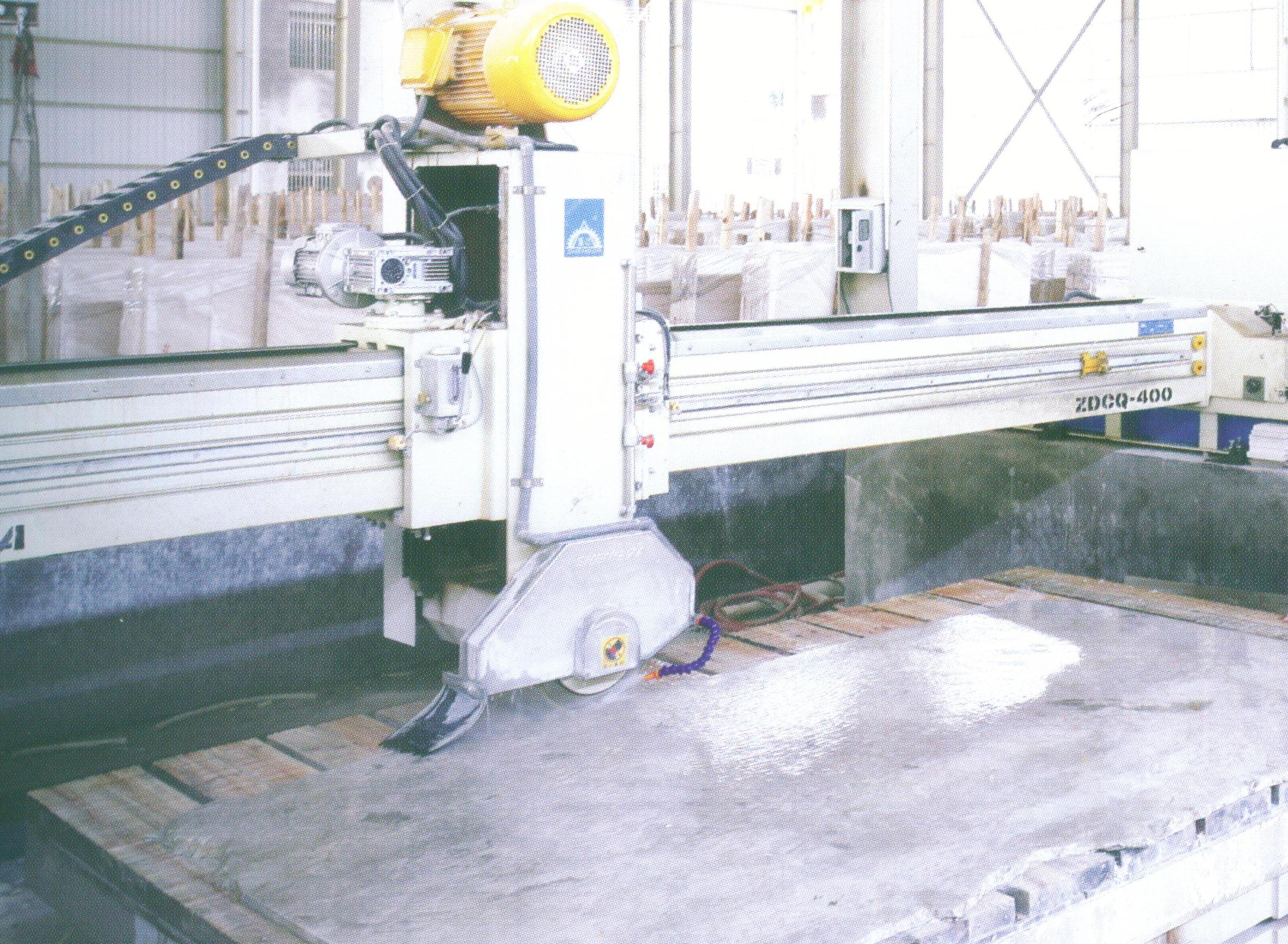 3、拼花板材切割:根據(jù)加工圖可以明確1000×1000為一單元的石材拼花由2種石材組成:香格里拉黑與金檸檬。將選擇好的香格里拉黑石材與金檸檬石材,利用規(guī)格板自動(dòng)紅外線切割設(shè)備(如圖1-5)將石材板材切割成1000×1000的規(guī)格板塊。