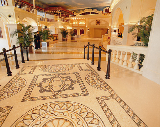 亮點:理石馬賽克產品完美融合文藝復興和歐洲后現(xiàn)代主義的建筑風格,以威尼斯文化為主題進行裝飾。中國大陸檔次最高的“皇冠假日”酒店之一。馬賽克拼花,為酒店營造出富麗堂皇并具異域情調氛圍,成為酒店最大的亮點,是目前國內馬賽克產品最具代表性的經典之作。此工程獲全國“魯班獎”。