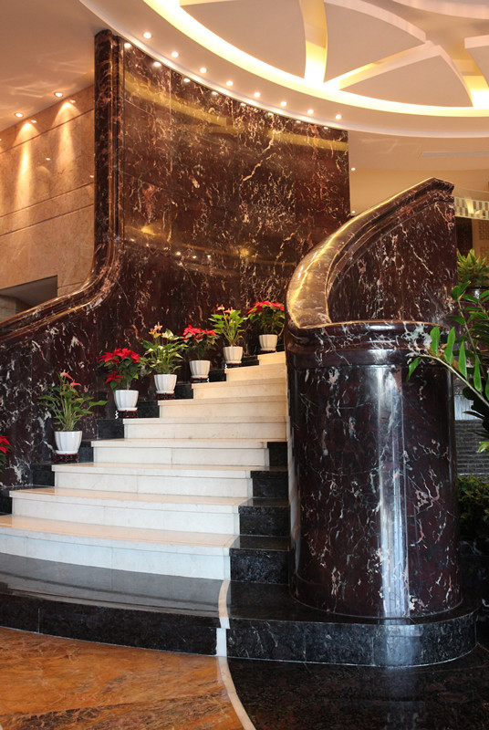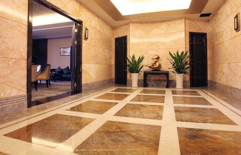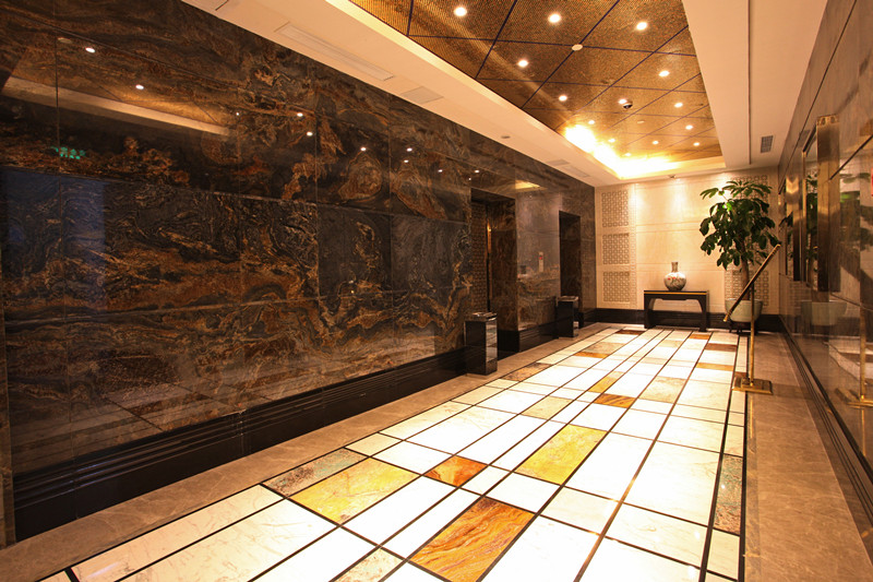 項目名稱:北京金悅酒店朝陽門店 地點:北京 年份:2010年 品種:墨綠麻、路透社、金枝玉葉、荔枝紅、海冰藍(lán)、黃袍、沙漠綠洲、 雪花白、意大利黑金花、啡鉆麻、黃金天龍、冰玉、高原印象 亮點:多種特色石材的完美搭配、荔枝紅旋轉(zhuǎn)樓梯 概述: 2010年,北京新世紀(jì)金悅酒店管理有限公司耗資三億多在北京最繁華的商業(yè)街區(qū)——朝陽門,打造金悅旗艦店,問鼎王朝酒店的奢華。 環(huán)球石材的特色品種以其稀有性,奇特性和尊貴性將中國建筑藝術(shù)與現(xiàn)代時尚設(shè)計融為一體,盡顯儒雅風(fēng)范,儀示群倫。 地面使用的是多種特色石材的完美結(jié)合:有富麗堂皇之余透出大氣磅礴之勢的黃袍;有色澤晶瑩透亮的海冰藍(lán);以及即高貴純潔,又清靈淡雅的冰清玉潔。 |