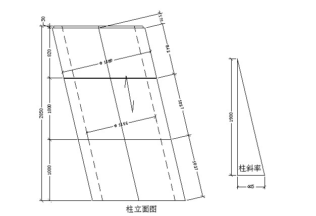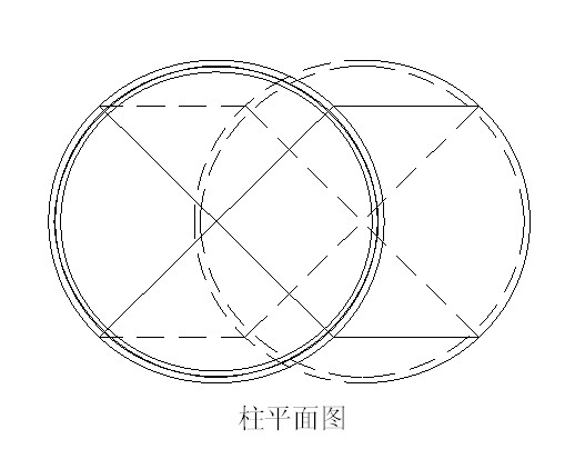 該批圓柱與以往加工的圓柱不同,傾斜密拼且端面水平,屬首次加工。縱向拼縫與中軸平行,由于分件原因,現(xiàn)每件弧板都存在撇底、撇面和一個工作臺轉(zhuǎn)角。立體幾何計算量較大。如果豎縫及分件線旋轉(zhuǎn)45度,加工將變得簡單得多,如下圖: