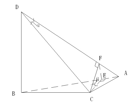 在RT△CEF中:tgβ=EF/CE推出tgβ=(AC*DB)/(AD*BC)=sinα*(DB/BC);