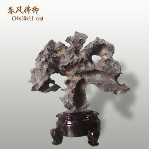 7、英石:英山盛產(chǎn)的英石,有陽石和陰石之分。出土者為陽石,質(zhì)地堅硬,色澤青蒼,扣之清脆。入土者為陰石,質(zhì)地稍潤,色有微青和灰黑,扣之皆有韻聲。英石褶皺細密,迂回曲至,形如云立,紋比波搖,獨具皺、瘦、透、漏四妙特色。