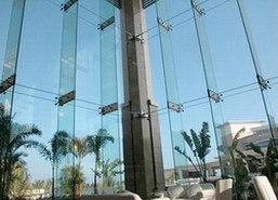 點支式玻璃幕墻也稱點駁接玻璃幕墻,其特點是可以透過玻璃清楚地看到支撐玻璃的整個結構系統(tǒng)。從受力桿件結構劃分為:全玻點駁接玻璃幕墻、鋼管架點駁接玻璃幕墻、拉索式點駁接玻璃幕墻等。點支式玻璃幕墻一般采用安全玻璃(鋼化、夾膠玻璃),利用玻璃透視性的特點,使建筑具有很強的通透性和現(xiàn)代感,追求建筑物內外空間的通透和融合,充分體現(xiàn)建筑的結構美和現(xiàn)代美。