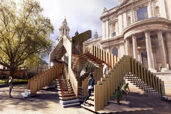 當(dāng)談到樓梯,我們通常想到的是一個(gè)傾斜的垂直人行踏板組成,并且可以連接建筑的不同層面,屬于一種區(qū)域過度構(gòu)架。而建筑師DRMM為2013年倫敦設(shè)計(jì)節(jié)設(shè)計(jì)了一座“無窮無盡的樓梯”。