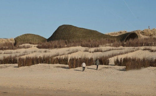 馬可·卡薩格蘭德的本次建筑作品,坐落在阿根廷一片充滿自然氣息的空地上,遠(yuǎn)遠(yuǎn)看上去,該建筑就像是一個(gè)草編的捕魚簍,躺倒放置在一片草坪上。這個(gè)看上去像草編魚簍的建筑沒(méi)有非常規(guī)則的形狀,線條柔和流暢,中間高,兩邊低,并且在它的兩邊分別有兩個(gè)入口,方便人們進(jìn)入建筑內(nèi)部。