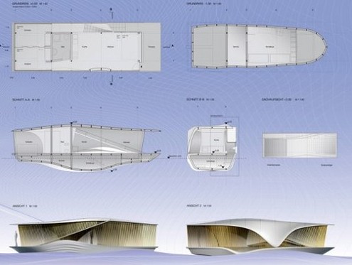 據(jù)悉,RAFAA Architecture& Design設(shè)計(jì)所參加了德國Internationale Bauausstellung組織的可移動(dòng)式漂浮建筑比賽。他們設(shè)計(jì)的可移動(dòng)式太陽能水上漂浮住房獲得了該組比賽的一等獎(jiǎng)。該可移動(dòng)式太陽能水上漂浮住房是為德國 Lusatian等湖泊較多的地區(qū)而設(shè)計(jì),以使這些地區(qū)人們的生活更加方便。設(shè)計(jì)師的靈感正是來源于濱水區(qū)的建筑,同時(shí)也是為了實(shí)現(xiàn)人們在水上居住的愿望。