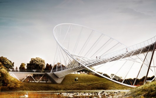 由penda建筑事務(wù)所完成的索爾福德橢圓草地橋位于英國。擔(dān)當(dāng)本次設(shè)計(jì)的主設(shè)計(jì)師為Alex daxböck和Chris precht。這一人行橋設(shè)計(jì)比賽同時(shí)也是由RIBA皇家建筑師協(xié)會(huì)主辦的項(xiàng)目。