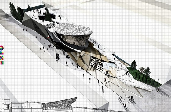 目前,這四組作品將要提煉成一個最終作品,建造在一個長方形的基地上(20*40M),這將會是一個“引起共鳴的環(huán)境”,旨在于表達“保護星球,使 生命充滿能量”的中心主題。建筑師說:“設(shè)計使我們更注重于發(fā)掘社會有機體能夠共同且獨立地享有建筑的一些基本功能。植物能夠使環(huán)境資源得到控制,并且它 們能夠意識到去區(qū)別’自我’同’異我’,以此來保護自己的領(lǐng)土。這就是說,對于植物的系統(tǒng)和生態(tài)行為的認知能夠為建筑設(shè)計提供幫助。建筑結(jié)構(gòu)就像是一個對 稱的菱形圖案,它能夠使地表產(chǎn)生一種看似生長的狀態(tài),將展館的主體包裹于基地的中心。
