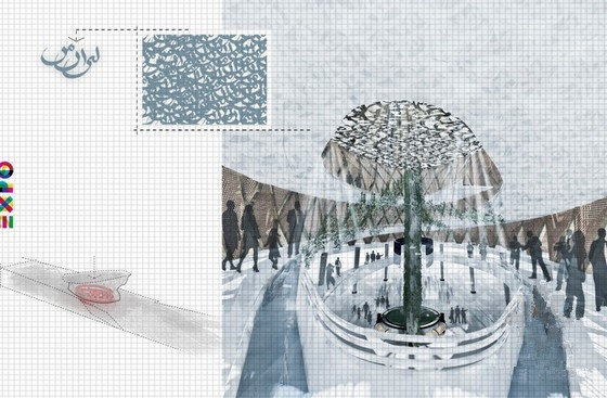 從平面圖來看,‘我的伊朗’像一片懸浮的葉子,暗示著從地下生長出來的種子。自然通風(fēng),被動式制冷和太陽能源以及其他可持續(xù)設(shè)計的特征對概念設(shè)計以 及物理形式都是非常重要的。在室內(nèi)空間,有一個14-18米高的中庭,還有一個將參觀者引入空中的斜道,使得游客可以體驗不同的感官享受。在展館前有一個 小池塘,位于中心軸線,對稱的形狀提供了一個能夠進行自我反省的空間,隱約暗示通過一些符號暗示這是一個波斯式的空間。水從室內(nèi)的斜道旁流淌過去,象征著 葉脈,亦即生生不息的生命。”