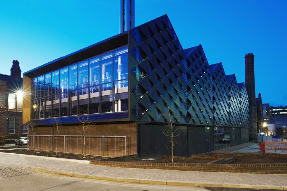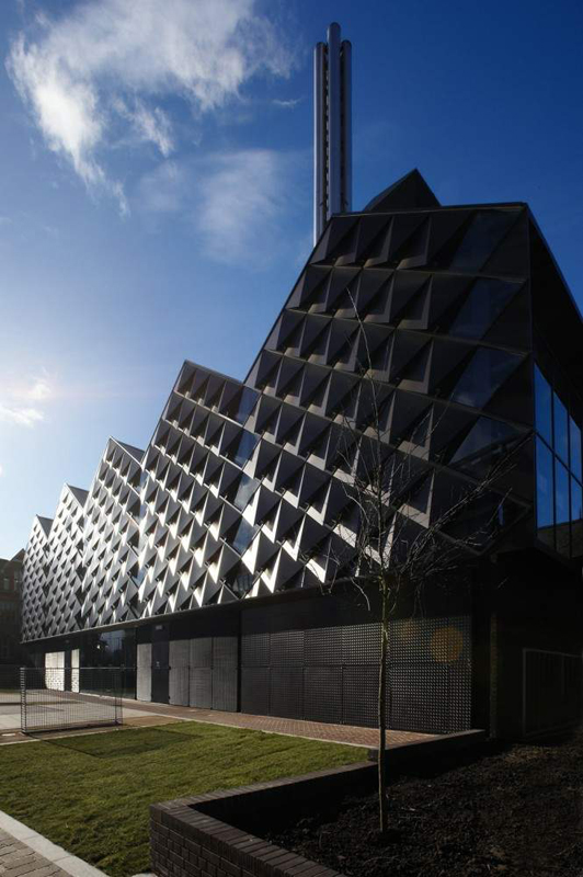 英國利物浦大學新能源中心,提供了挑戰(zhàn)在突出位置建立一個鍋爐房的一個新穎的回應。它位于大學于2008年落成的萊維特伯恩斯坦的第一所樓宇的幾個院落中。新大樓位于校園內的主要行人脊柱上,在一個有吸引力的維多利亞時代的建筑區(qū)域內。新能源中心,包括400萬伏安天然氣驅動的熱電聯(lián)產裝置,3 × 12Mw鍋爐組成和3.4Mw天然氣發(fā)動機。