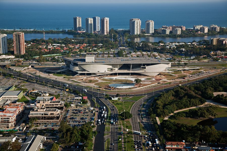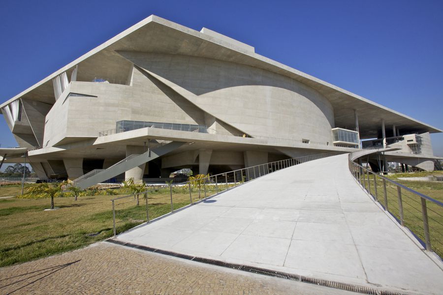 巴西里約熱內(nèi)盧藝術(shù)城位于開闊的里約熱內(nèi)盧新區(qū)巴拉大蒂茹卡。藝術(shù)城是山海之間,單純景觀中的一個標(biāo)志性建筑物。兩條高速公路在此交匯, 未來,這里會是新城區(qū)的核心地帶。建筑被結(jié)構(gòu)支撐起,離地十幾米,可看成是落在巨大結(jié)構(gòu)上的小城市,一個可以遠(yuǎn)眺山海美景的公共熱帶花園。建筑參照了巴西建筑的原型,可以理解成為城市之上,一個有著超級多大陽臺的大房子。