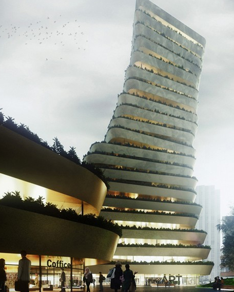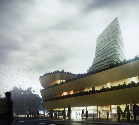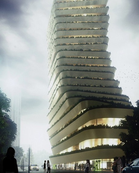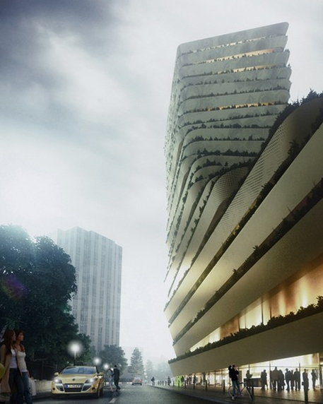 位于斯洛文尼亞采列古城中心,廢棄的場地并非直接相鄰歷史建筑,但有一個相當復雜的高海拔小面積的周圍環(huán)境。設(shè)計師希望給這片區(qū)域創(chuàng)建一個邏輯,使各種類型建筑組合在一起。該建筑由一系列堆疊的層面或推或拉地疊放在一起,好像是在對周圍的現(xiàn)有空間做出回應。塔分為三個大層,低水平在南面反映出高度的獨立住宅的,在底層形成一個活躍的臨街公共設(shè)施,和街區(qū)一起形成了一個新的開放廣場。西部逐漸向上升起,變成一系列的陽臺,最終到達周邊建筑的高度。建筑正面展開朝向相鄰的大公園,有良好的觀景角度。水平梯田線的外觀結(jié)構(gòu)模糊了劃分部分之間的轉(zhuǎn)換。設(shè)計特別注意幫助集成現(xiàn)有的人行道,引導行人到市中心、廣場和徑 savinja河。一條綠帶也沿著建筑邊緣,形成了一個歷史去的框架。