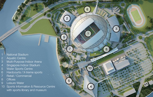 作為一個(gè)面積雖小而經(jīng)濟(jì)富裕的高度城市化國家,新加坡體育中心項(xiàng)目反映了新加坡希望成為世界體育中心的壯志雄心。體育中心項(xiàng)目包括一座擁有55,000個(gè)座位的國家體育場,主要用于舉辦音樂會(huì)和其他如足球、體操等賽事,另外包括水上運(yùn)動(dòng)中心、多功能室內(nèi)場館及大量社區(qū)體育設(shè)備,另外還具有40,000平方米的商業(yè)區(qū)與辦公區(qū)。