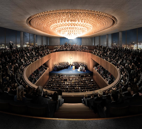 大衛(wèi)·奇普菲爾德的方案可以減少建筑占地,使得額外的外部空間可以用作公園和河畔長(zhǎng)廊。光線反射自建筑外觀,照亮了周圍的區(qū)域。入圍階段比賽評(píng)委就稱贊該項(xiàng)目彰顯高貴,是一個(gè)與周圍環(huán)境相平衡的獨(dú)特設(shè)計(jì),并且可以看做是對(duì)諾貝爾這一偉大獎(jiǎng)項(xiàng)的具體闡釋。