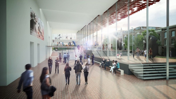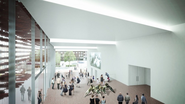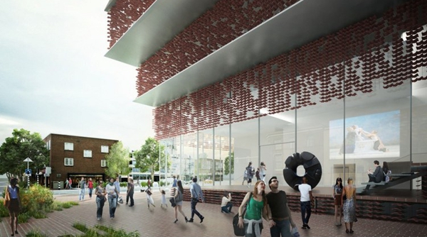 公共街道連接了萊茵河和阿納姆市區(qū),博物館的永久收藏展區(qū)位于三樓,臨時展覽區(qū)位于最高層。內(nèi)部展廳并沒有采用傳統(tǒng)的白色方形房間布局,而是直接由展覽的需求定制,融合藝術(shù)品、游客和阿納姆這座城市本身的需要進(jìn)行設(shè)計。兩外,博物館和電影劇院也以這個文化館為中心呈環(huán)狀設(shè)計,使各個功能區(qū)在整體上有一個貫通性。