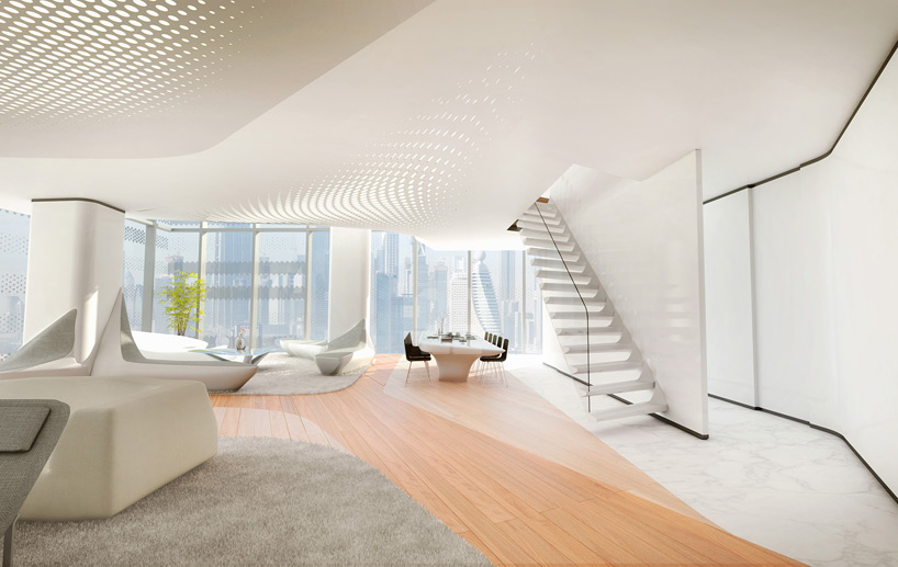 這是由扎哈-哈迪德完成的迪拜opus辦公樓室內(nèi)設(shè)計(jì)。繼扎哈哈迪德設(shè)計(jì)和施工的迪拜opus辦公樓后,扎哈哈迪德還對(duì)室內(nèi)進(jìn)行了設(shè)計(jì),包括建筑頂層的酒店客房、公寓單元。