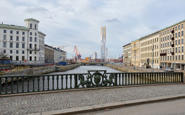 以超高層建筑設(shè)計(jì)見(jiàn)長(zhǎng)的SOM事務(wù)所擊敗了扎哈·哈迪德(Zaha Hadid),贏得了位于瑞典哥德堡的瑞典第一高樓的設(shè)計(jì)機(jī)會(huì)。這座超高層為居住建筑,名為“北極星(The Pole Star)”,高230米。底面的四個(gè)面通過(guò)扭轉(zhuǎn)達(dá)到頂部后正好旋轉(zhuǎn)了90°,這一瘋狂的扭轉(zhuǎn)成就了改摩天樓的最大特色。