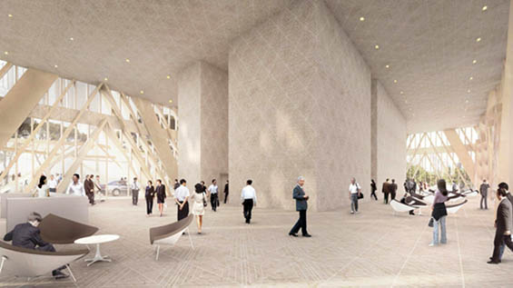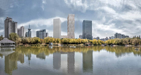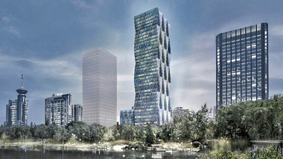 建筑高170米,恰似北邊廣袤的虹橋綠地中心和南邊人口稠密城區(qū)之間的媒介結(jié)合體。辦公室集中在細長的北向樓內(nèi)。辦公室采光很好,并且視野開闊,可以將整個上海市盡收眼底。這棟立方體狀的建筑上,采用了三維菱形圖案,打造出階梯式的立面,像是雕刻出來的一般。這樣的設計也將光與影運用得別開生面。