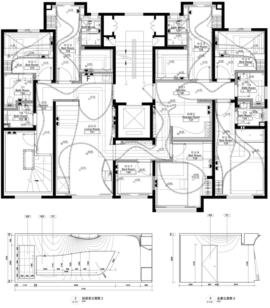 以此來達到一個連貫完整的洞穴空間,使參觀者擁有一種獨特而優(yōu)美的審美體驗。同時,室內(nèi)的曲線設計與室外綿延的山巒呼應,內(nèi)外融為一體。